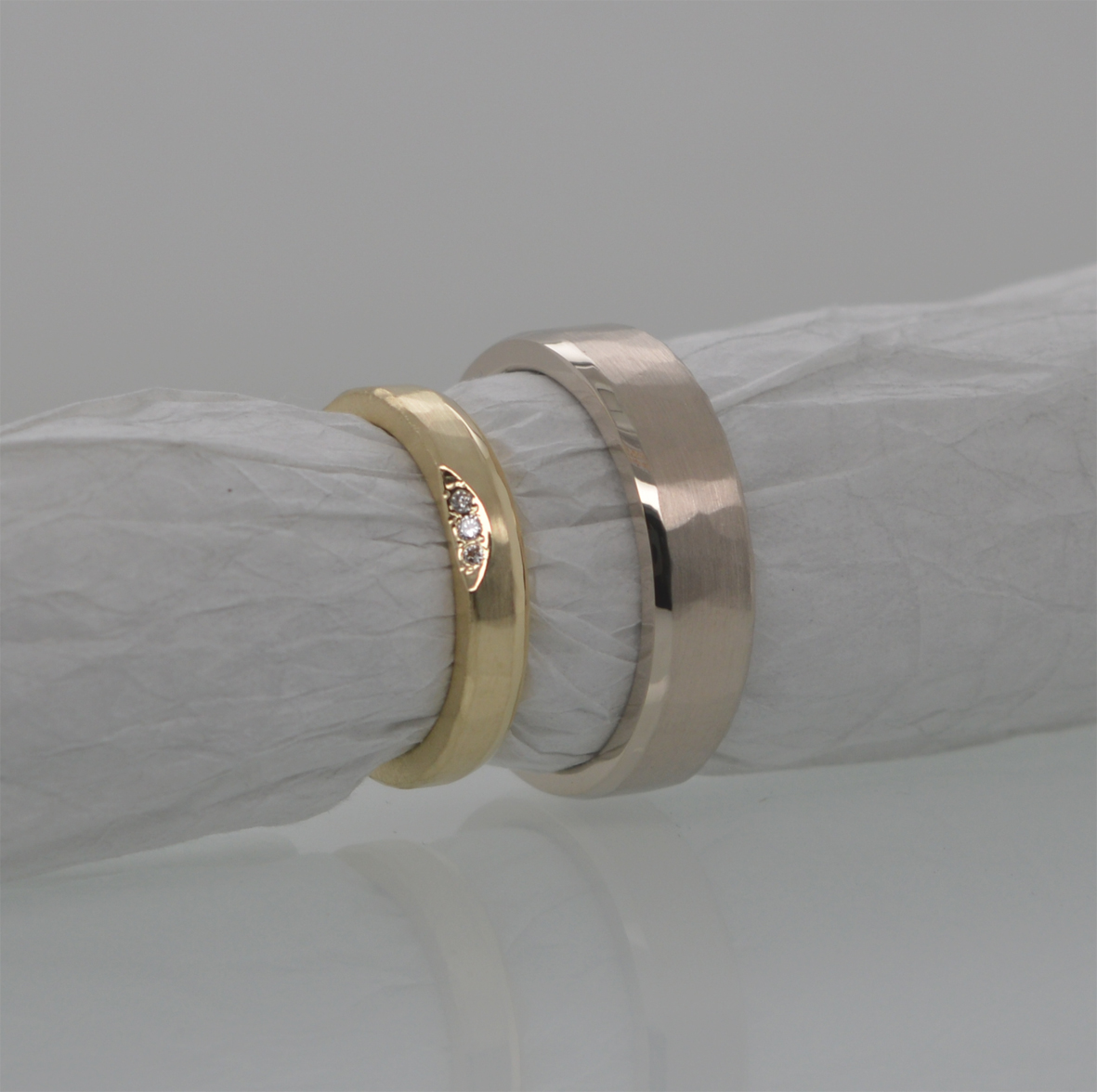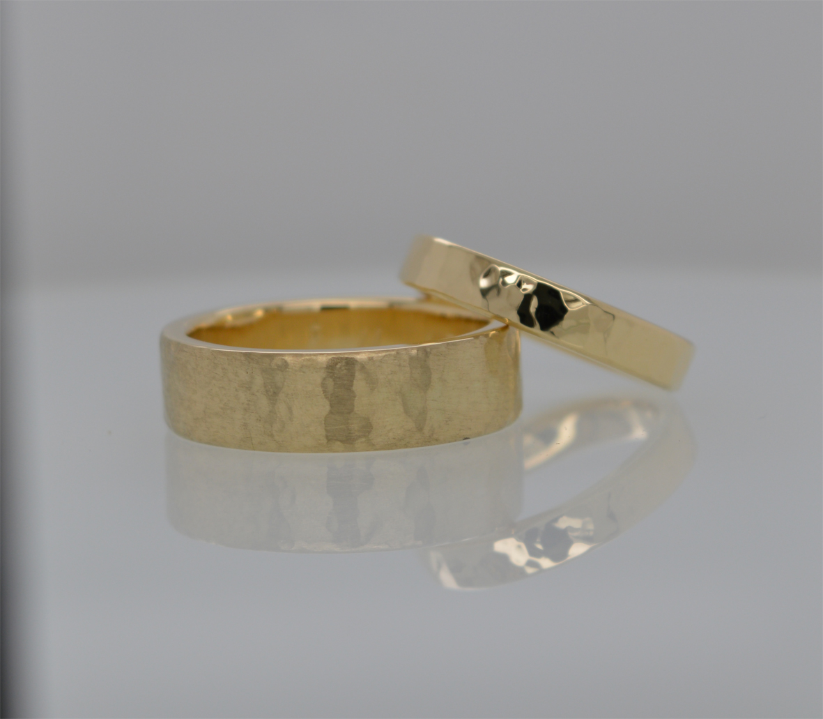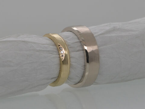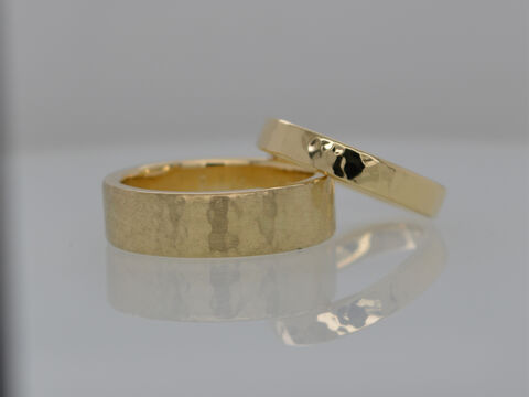Eheringe Workshop: Für einen besonderen Start in das gemeinsame Eheleben können meine Kunden selbst bei der Fertigung der Ringe mitarbeiten. Das Selberschmieden von Trauringen ist eine wunderbare Möglichkeit, Ihre Liebe und Verbundenheit auf eine einzigartige Weise zu symbolisieren. Es ermöglicht Ihnen, Ihre Ringe mit persönlicher Bedeutung und individuellem Stil zu gestalten. Indem Sie Ihre eigenen Trauringe schmieden, können Sie nicht nur Ihre Kreativität ausleben, sondern auch eine besondere Bindung zu Ihren Ringen aufbauen. Jeder Schlag des Hammers und jeder Handgriff wird zu einem Teil Ihrer gemeinsamen Geschichte. Sie haben die Möglichkeit, aus verschiedenen Materialien wie Gelb-, Rosé-, Rot- oder Weiß-Gold zu wählen und Ihre Ringe nach Ihren Vorstellungen zu formen. Ob klassisch, modern oder extravagant - Ihrer Fantasie sind keine Grenzen gesetzt. Das Selberschmieden der Trauringe bietet Ihnen zudem die Gelegenheit, einen unvergesslichen Moment gemeinsam zu erleben. Sie können sich gegenseitig unterstützen, während Sie Ihre Ringe formen und sie mit Liebe und Hingabe gestalten.